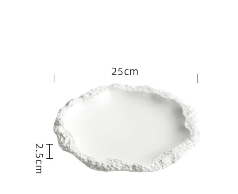 Assiette plate en céramique à motif roche, assiette à légumes, vaisselle domestique, assiette plate peu profonde, nouvelle collection 2025 pour hôtel, vaisselle au style ins, assiette à bord ondulé.