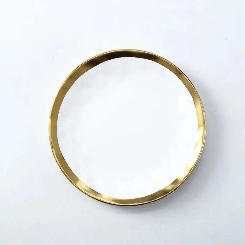 €28,90 EURAssiette à steak, assiette à légumes, assiette plate ronde à fruits, assiette à salade, assiette à usage domestique, style européen, en céramique plaquée or.