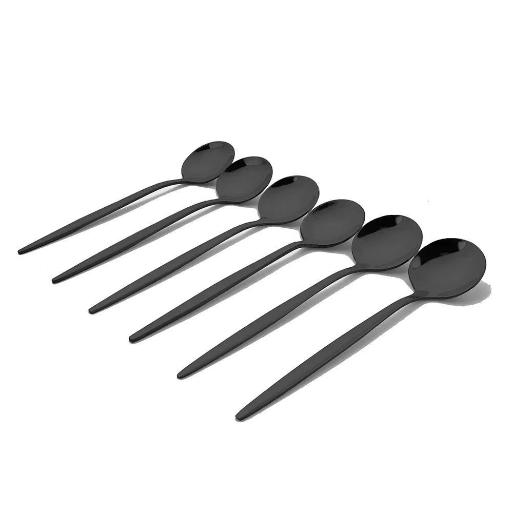 4/6/12/16/24Pcs Set de vaisselle et couverts noirs, comprenant fourchette, couteau, et petite cuillère, ensemble complet pour cuisine en acier inoxydable