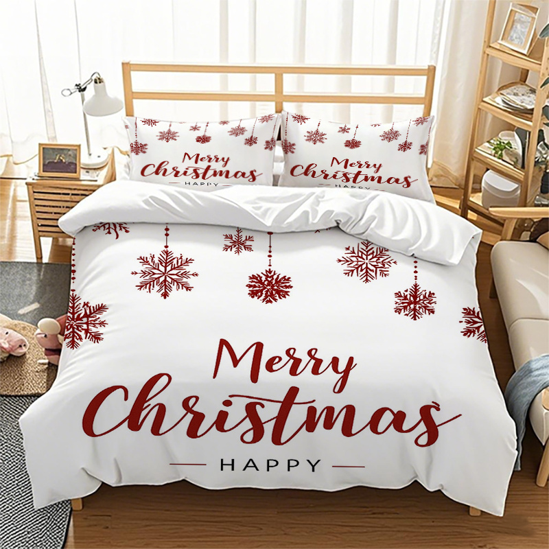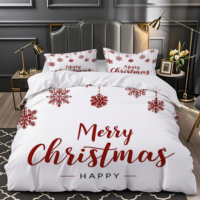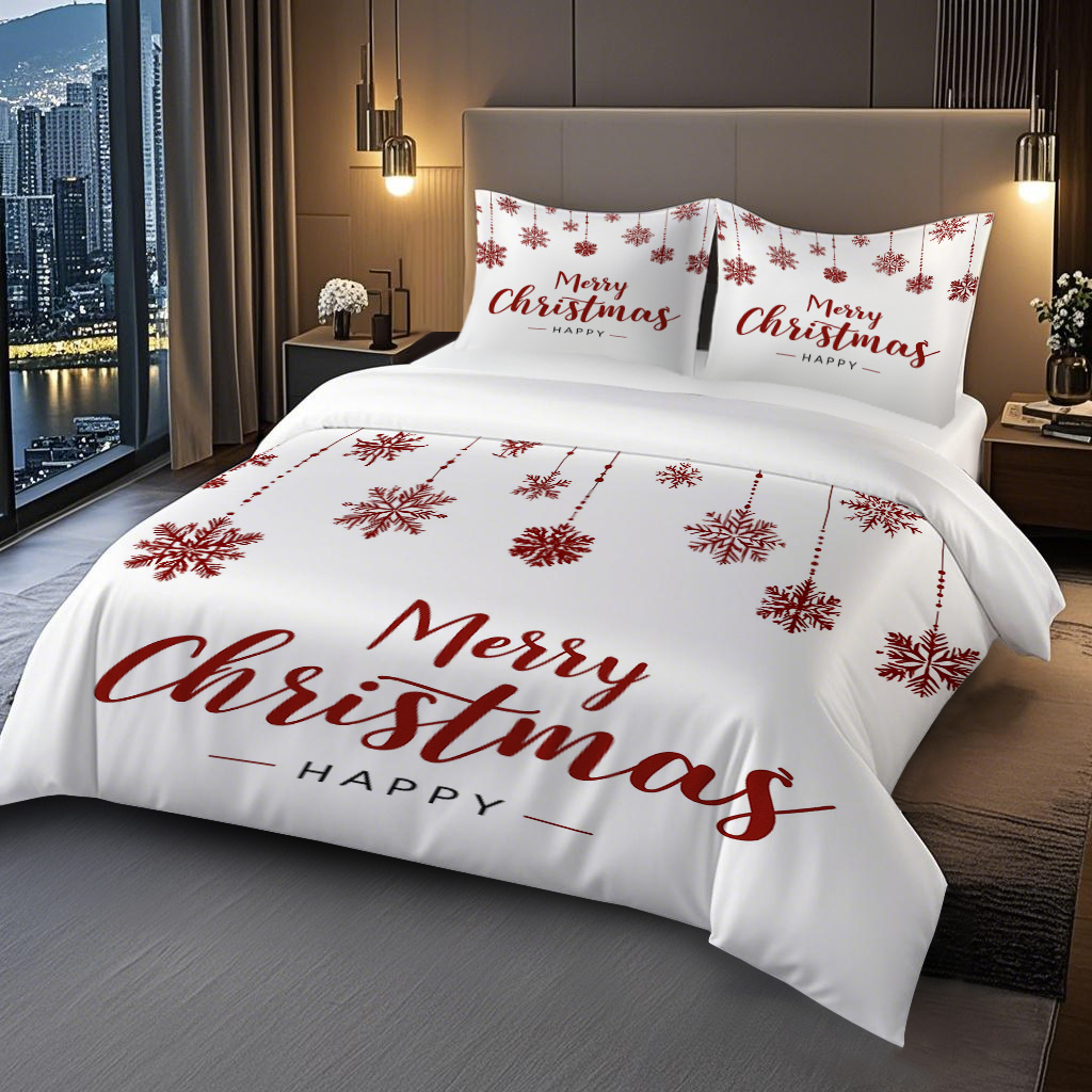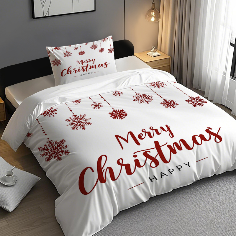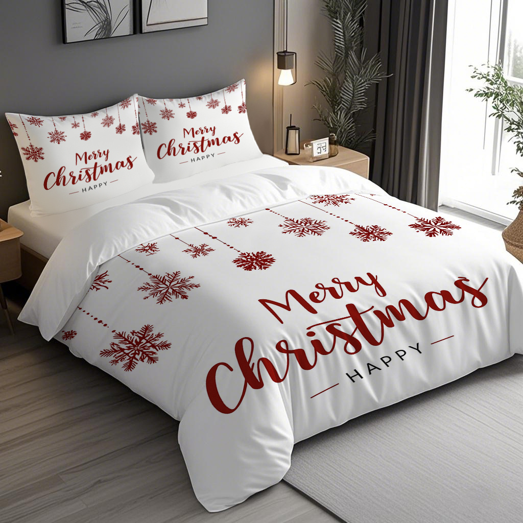 Offrez une touche féerique à votre chambre avec notre ensemble de literie spécial Noël, composé d’une housse de couette et de taies d’oreiller au motif flocon de neige rouge et message Merry Christmas. Fabriqué en polyester de haute qualité, ce linge de lit est doux, respirant et durable, idéal pour toutes les saisons. Sa fermeture zippée facilite la mise en place et assure un maintien parfait durant la nuit.