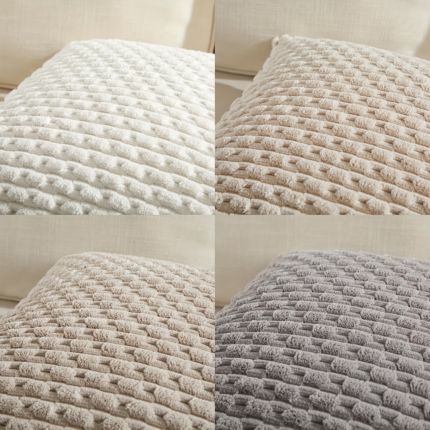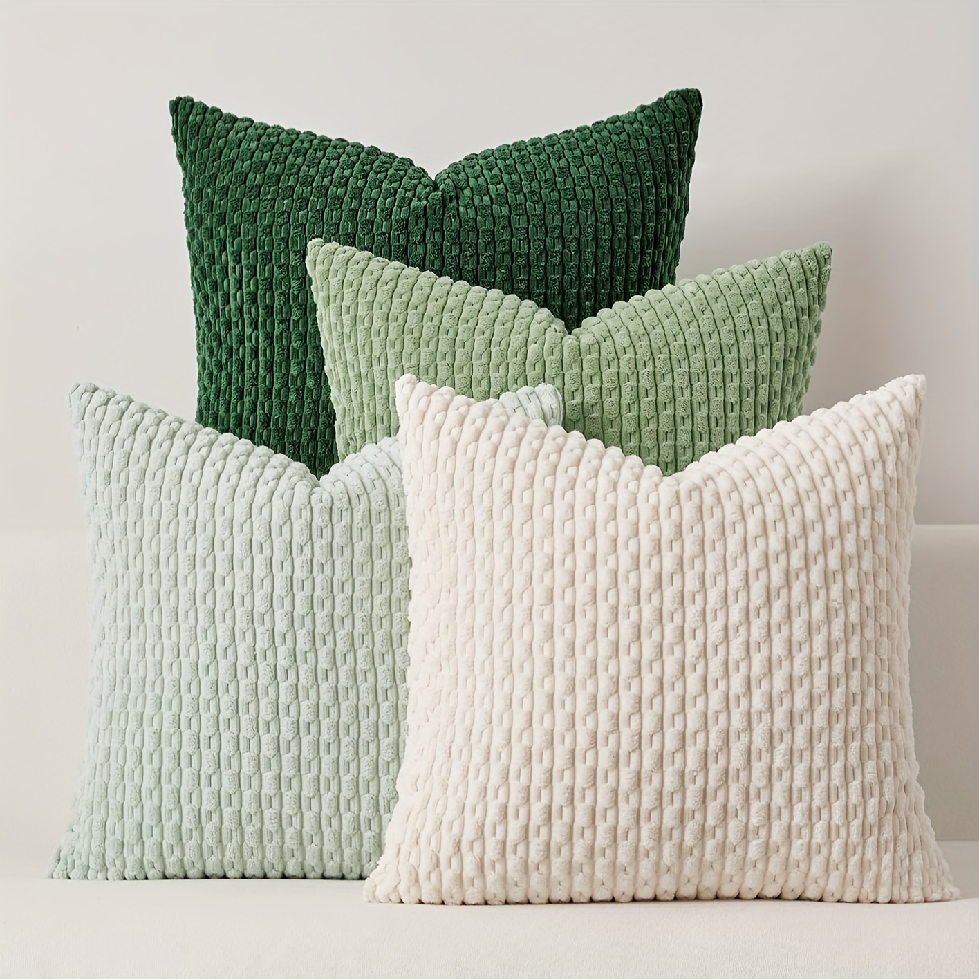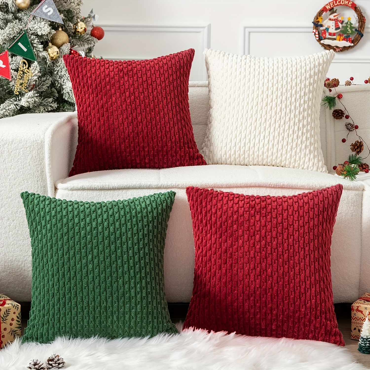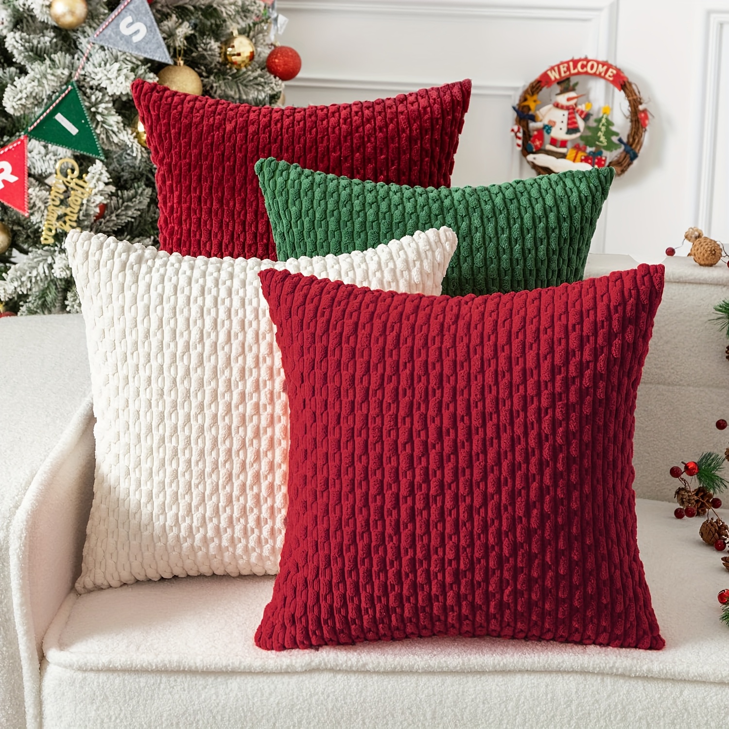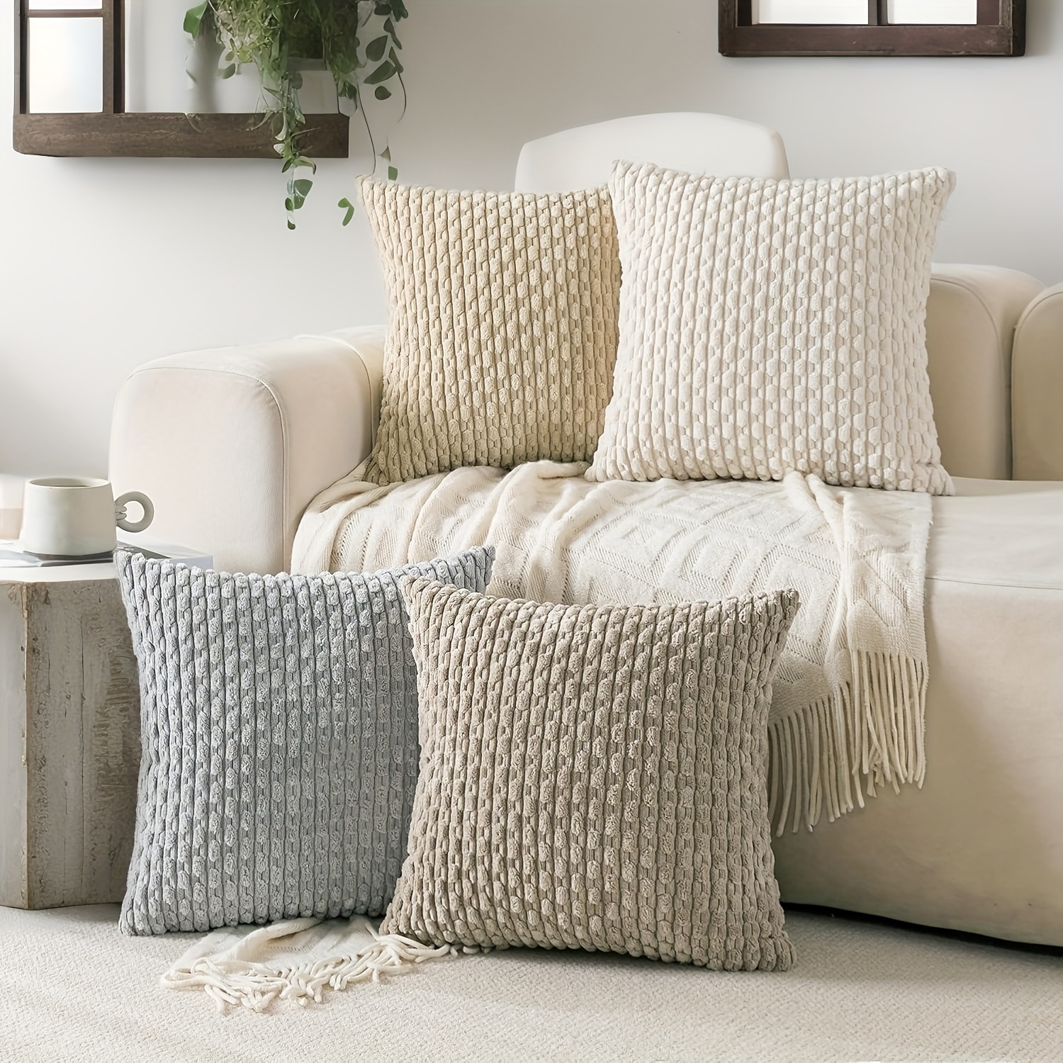 4 housses de coussin en peluche rayées – Style bohème chic et maison de campagne, doux polyester, fermeture éclair, lavables en machine – Idéales pour la décoration du canapé