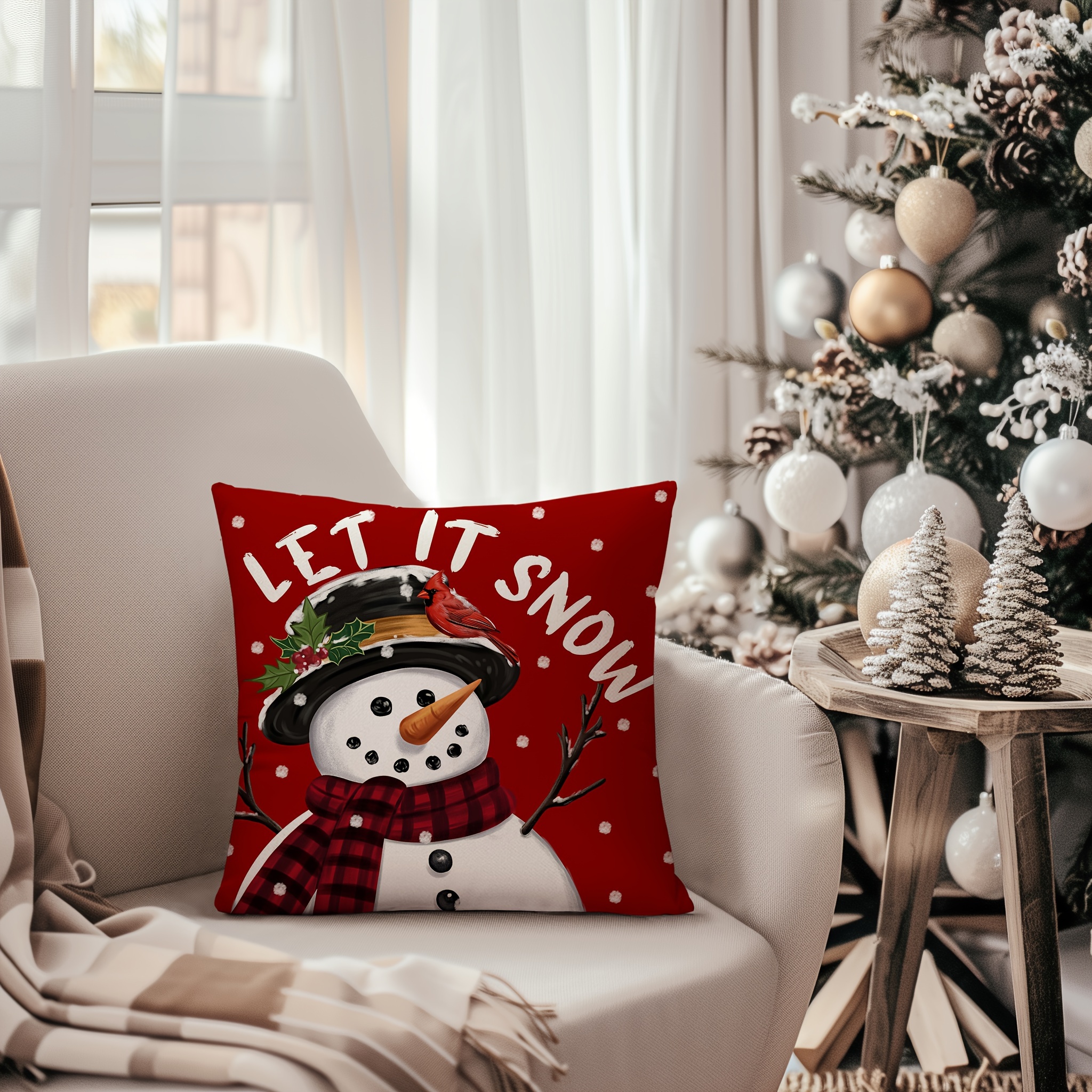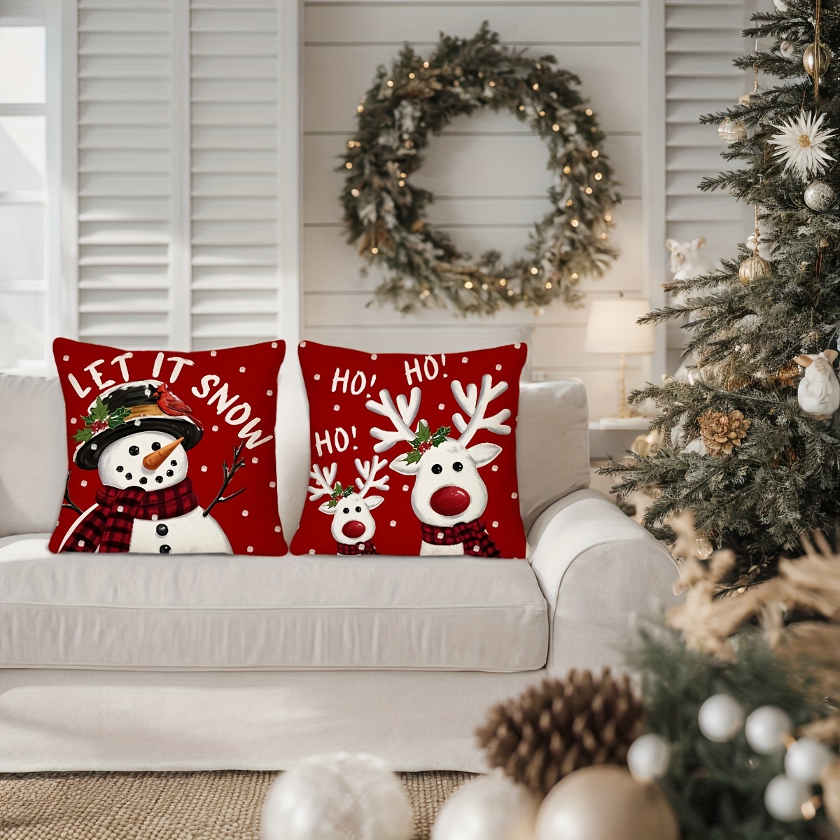 Ajoutez une touche festive et chaleureuse à votre intérieur avec ce lot de 4 housses de coussins de Noël rouges, conçues en polyester ultra résistant et doux au toucher. Chaque housse mesure 45,72 x 45,72 cm et présente des motifs exclusifs : bonhomme de neige, rennes, messages « Let It Snow » et « Merry Christmas », parfaits pour instaurer une ambiance hivernale dans le salon, la chambre ou sur la terrasse.