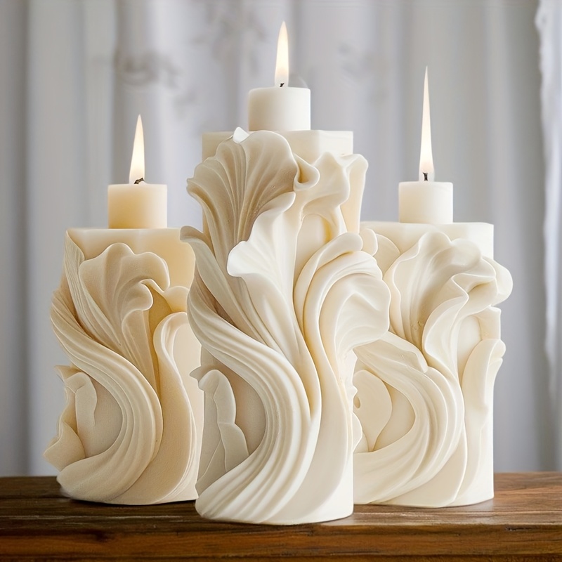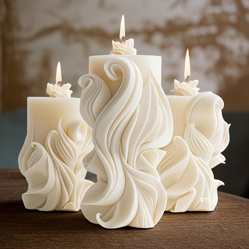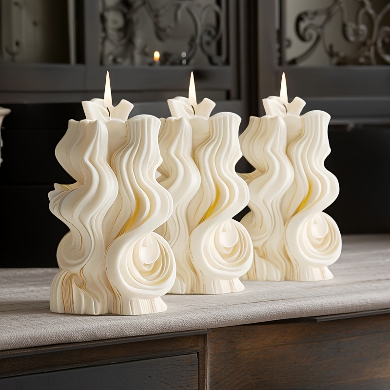 Bougie pilier à texture ondulée artistique – mélange de cire de soja et de cire d’abeille, une seule mèche, durée de combustion de 4 à 8 heures, bougie décorative d’intérieur pour la détente à la maison