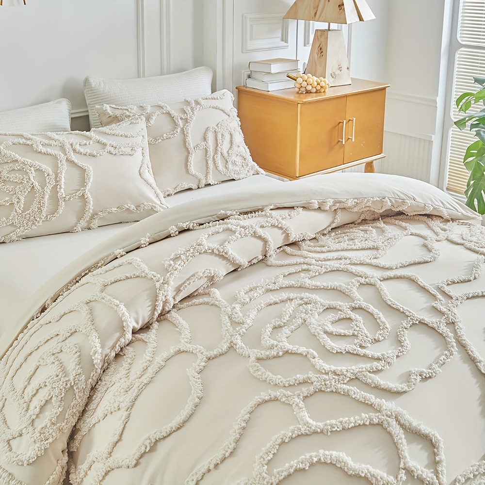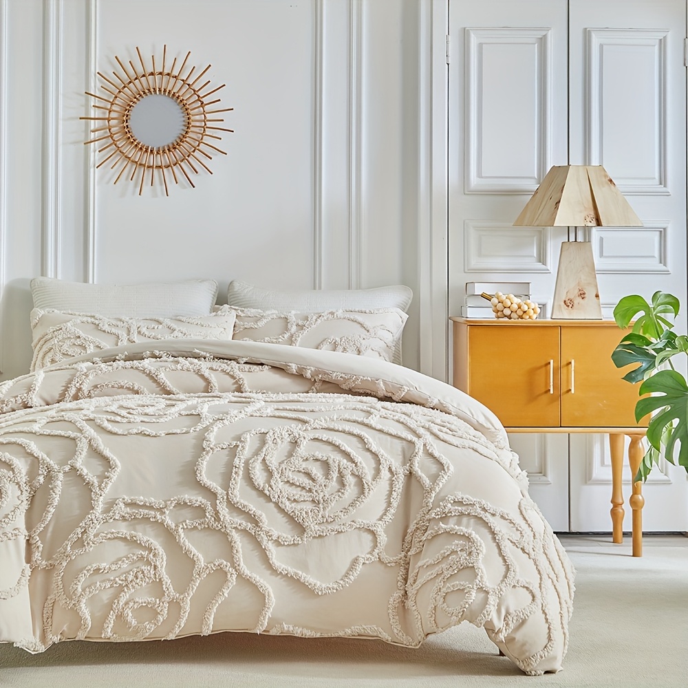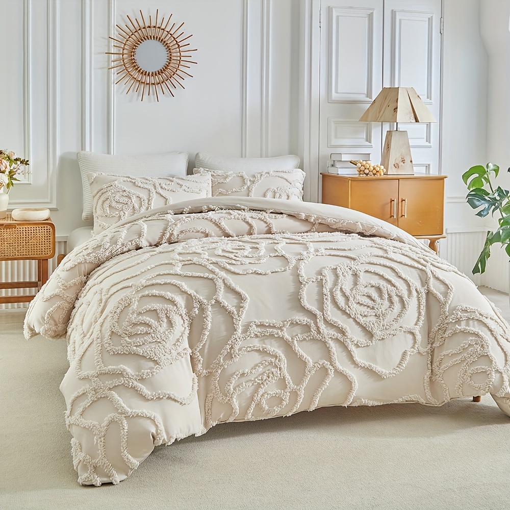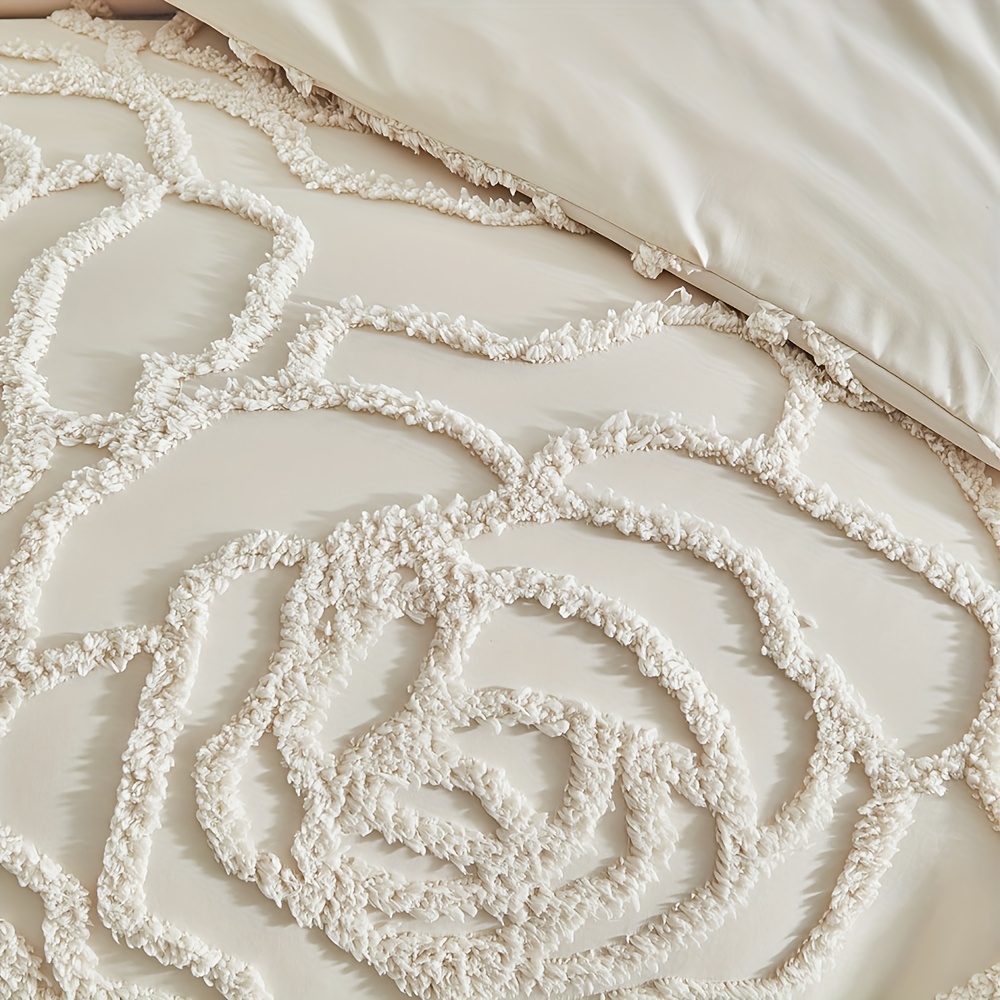 Transformez votre chambre avec cette élégante housse de couette tuftée au motif de grandes roses, accompagnée de deux taies d’oreiller assorties pour une décoration unique et raffinée. Fabriquée en polyester de haute qualité (300g/m²), cette parure convient à toutes les saisons grâce à son tissu doux et respirant. Son toucher exceptionnellement moelleux garantit un confort optimal pour des nuits paisibles et réparatrices.